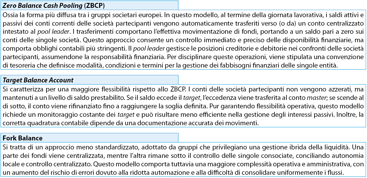Il physical cash pooling può essere declinato in differenti configurazioni operative.