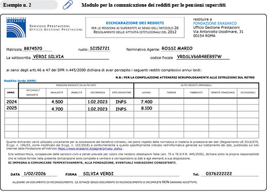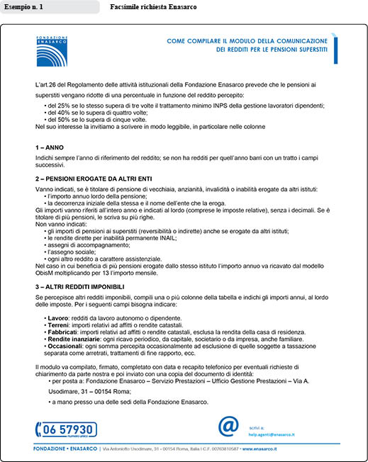 Periodicamente la Fondazione Enasarco aggiorna l’importo della pensione che spetta ai superstiti, in applicazione dei limiti di cumulabilità dei redditi posseduti (art. 26 Regolamento Enasarco). I titolari di pensione ai superstiti sono tenuti a comunicare alla Fondazione eventuali variazioni reddituali che possono incidere sulla determinazione della percentuale di riduzione applicata, utilizzando il modello cartaceo predisposto “Dichiarazione dei redditi per i superstiti” e inviarlo:
