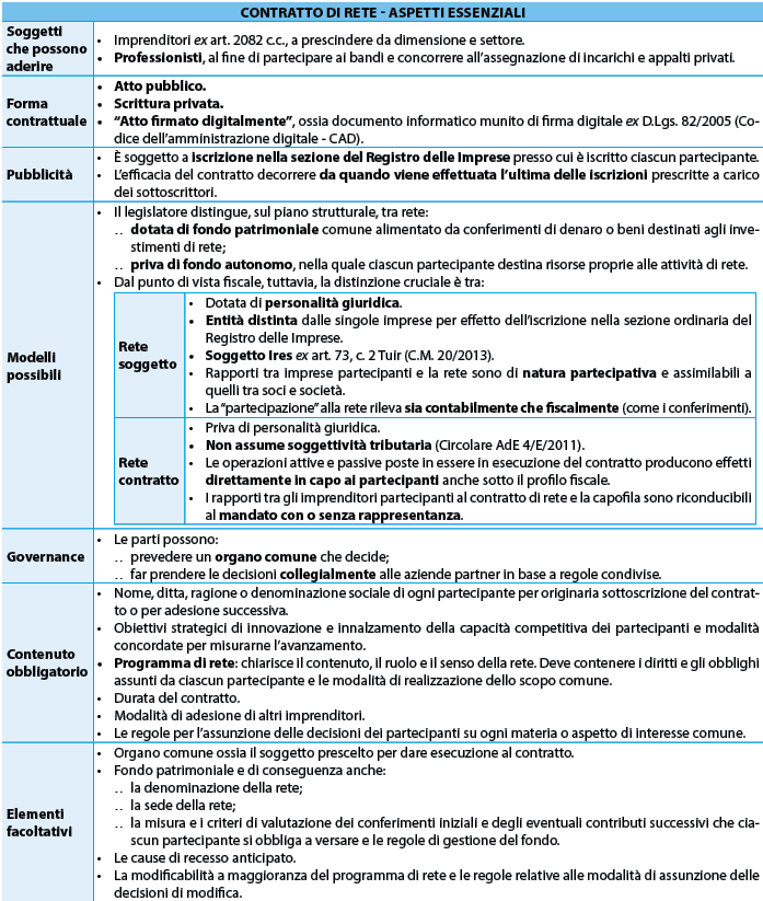 Rete contratto: si tratta della versione “pura” del contratto, priva di soggettività giuridica, che organizza le relazioni interne dei partecipanti.