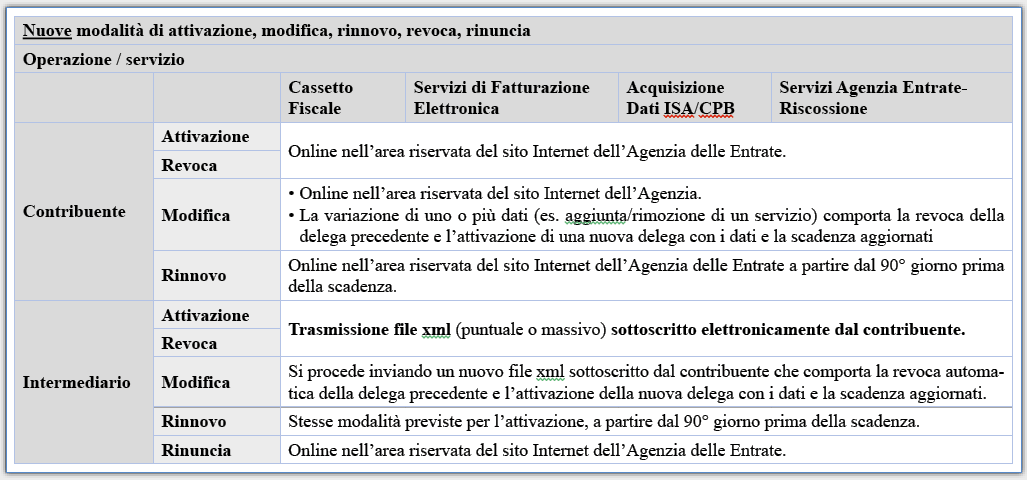Comunicazione dei dati della delega all’Agenzia delle Entrate, a cura del delegante o dell’intermediario delegato, in modalità esclusivamente telematica.