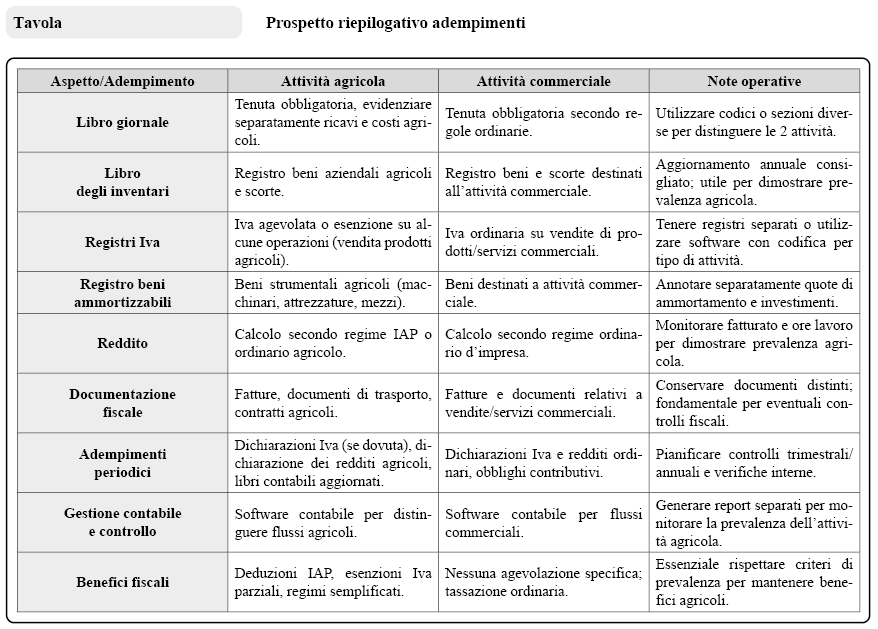 Per quanto attiene le imposte indirette, le attività di imprenditore agricolo e commerciale dovranno essere gestite come attività separate.